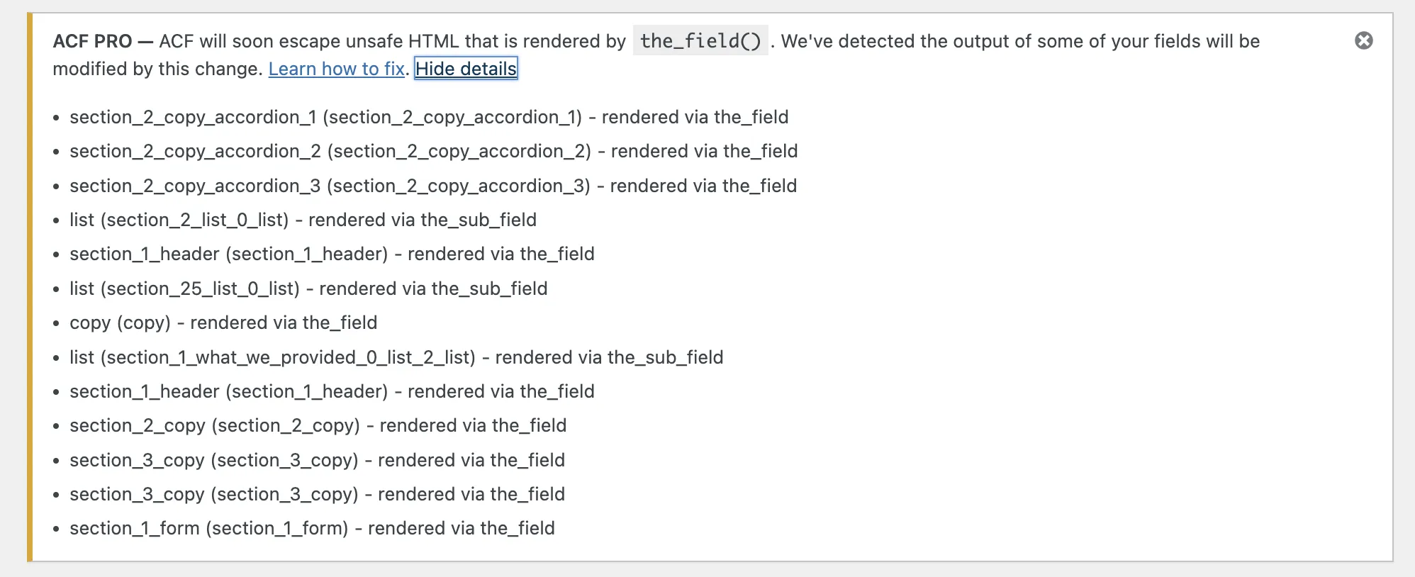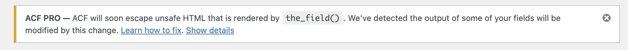 the_field() referencesadd_filter( 'acf/the_field/escape_html_optin', '__return_true' );